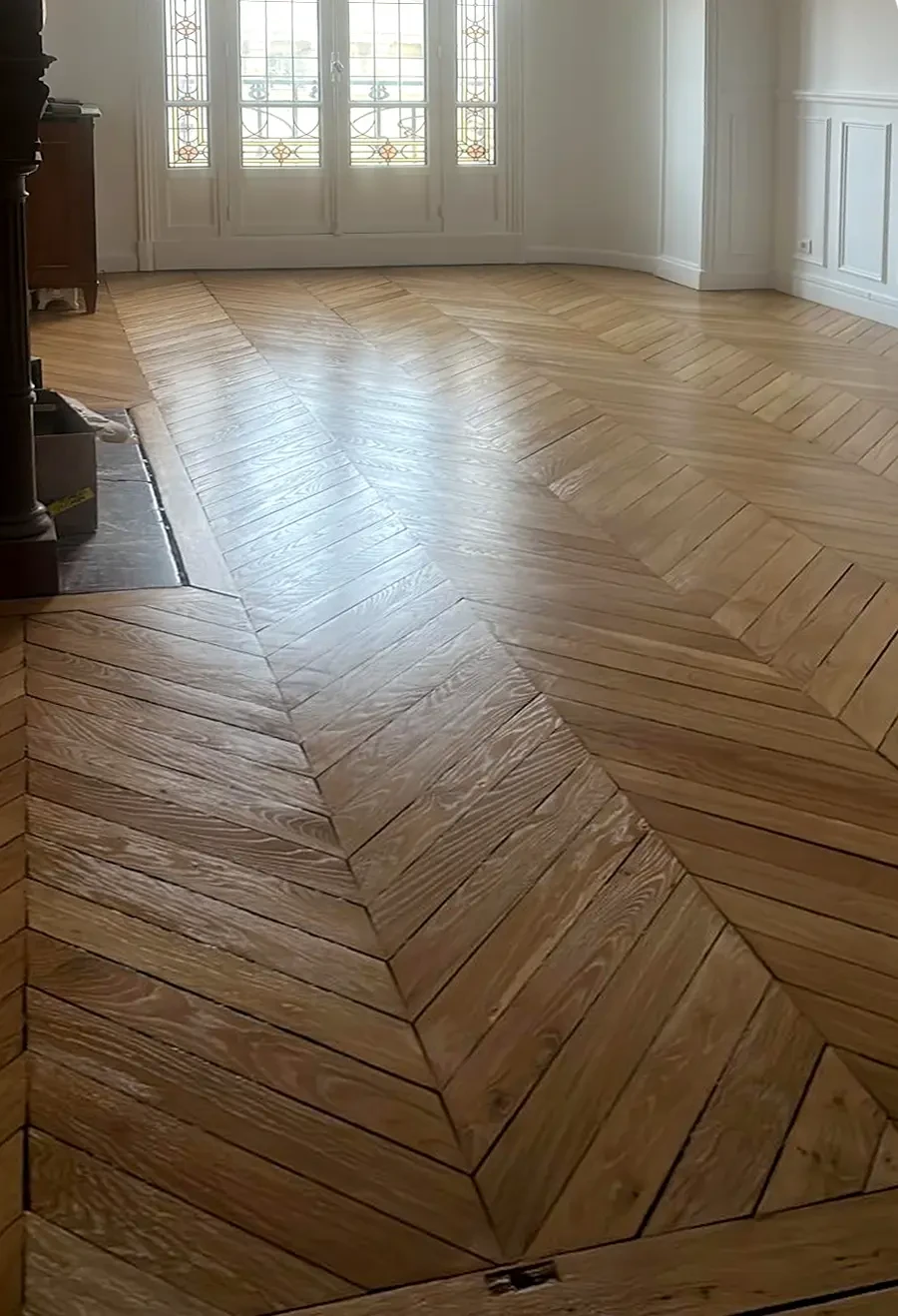 L'entretien diffère selon la finition de votre parquet. Pour un parquet verni, un nettoyage régulier à l'aide d'une microfibre légèrement humidifiée suffit généralement. Évitez les produits agressifs et l'eau en abondance. Pour un parquet huilé, plus sensible, utilisez un savon spécifique pour bois huilé qui nourrira le matériau tout en le nettoyant. Dans les deux cas, prévenez les rayures en plaçant des feutres sous les meubles et en évitant les talons aiguilles. Une rénovation périodique (tous les 5 à 10 ans selon l'usage) vous permettra de maintenir l'aspect et la protection de votre parquet.